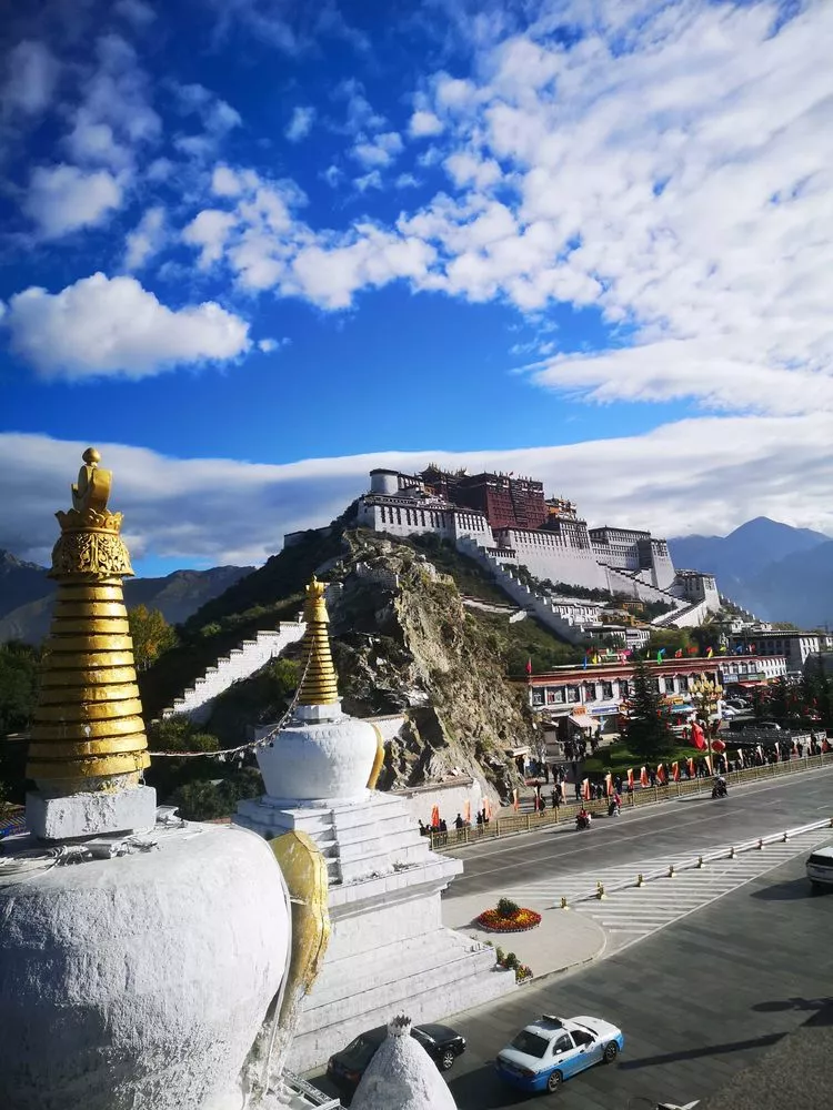 布达拉宫始建于公元7世纪,为文成公主而建,海拔3,700多米,999间房屋,占地41万平方米,建筑面积14万平方米,宫体主楼13层,高119米,全部为石木结构,5座宫顶覆盖镏金铜瓦,金光灿烂,气势雄伟。
