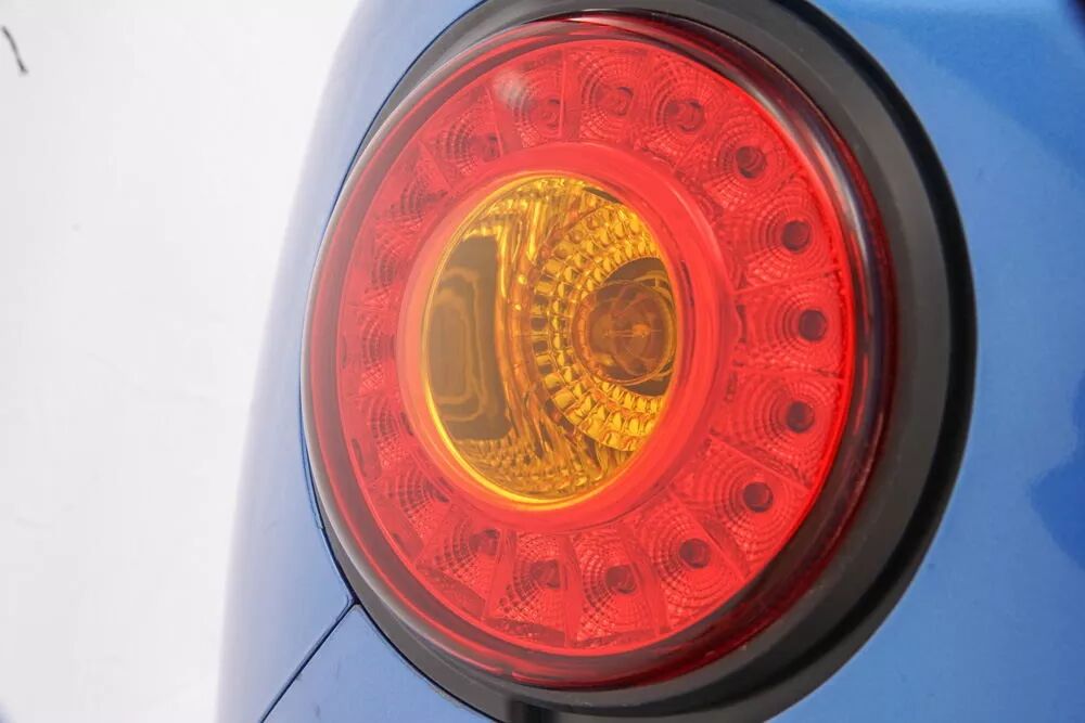 K2前大灯造型采用经典的复古圆形,“可调式”远近光一体设计,汲取了大阳四轮车家族的设计风格,照度超过行业标准,保证了夜间照明需要;标志性的尾灯组集制动灯、倒车灯于一体,配合穿透力极强的后雾灯、倒梯形转向灯和高位刹车灯,巧妙地将“方”与“圆”结合,带来视觉新体验,赋予K2独特个性。
